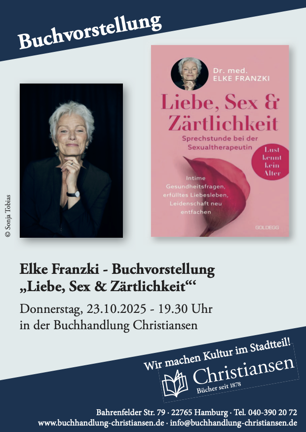 Lesung in der Buchhandlung Christiansen in Hamburg Ottensen, am Donnerstag, 23.10.2025 – 19.30 Uhr. Adresse: Bahrenfelder Str. 79 · 22765 Hamburg.
